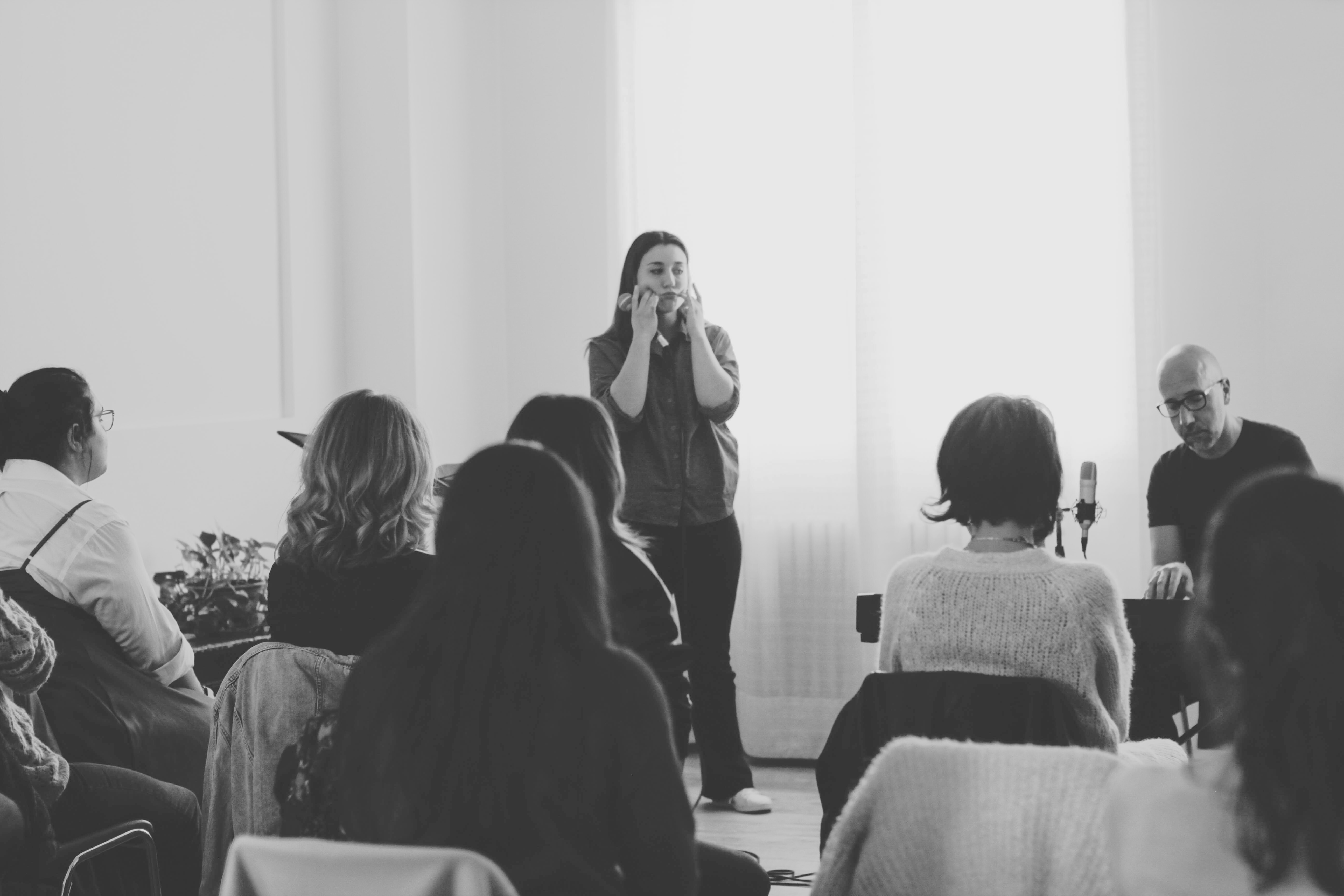 approfondimento avanzato dei principi di fonazione secondo il Metodo Vocessenza (ascolto, respiro, voce libera);
